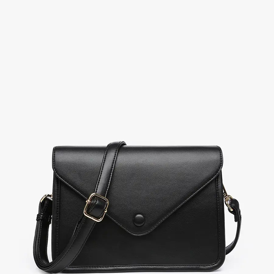 The Lagos Envelope Crossbody Clutch offers plenty of storage options in an elegant profile. Crafted from vegan leather with gold-tone hardware, this clutch features a flapover design with snap and zipper closures. An adjustable/removable crossbody strap provides an easy carrying option, while back and inner pockets keep your items securely organized. The clutch measures 9" long, 7" high, and 3.5" deep with a drop of 18".