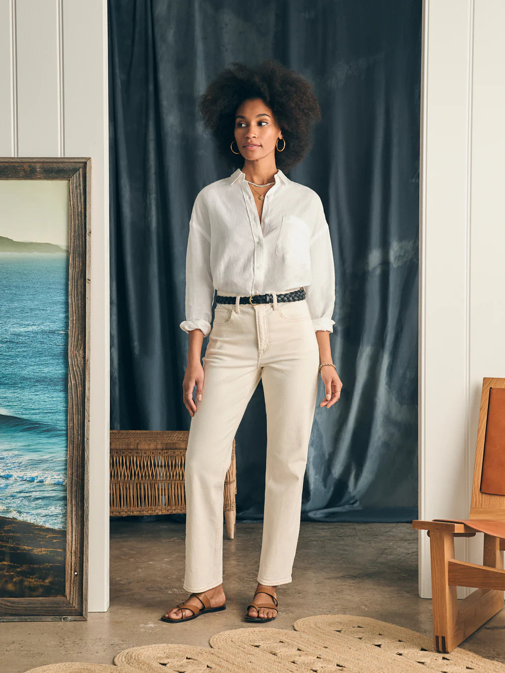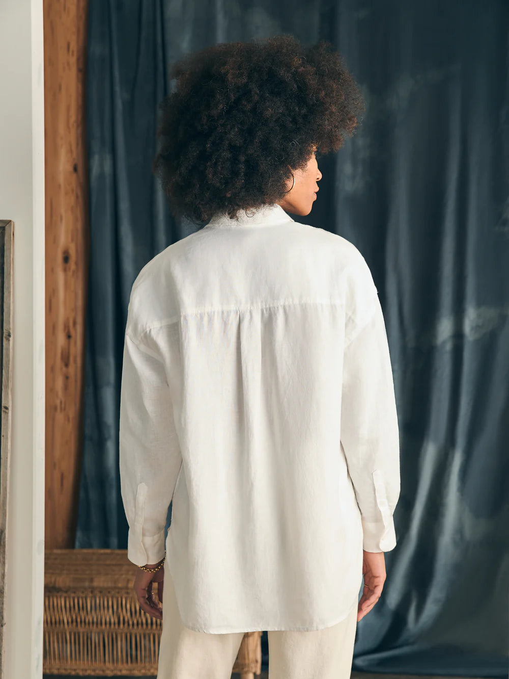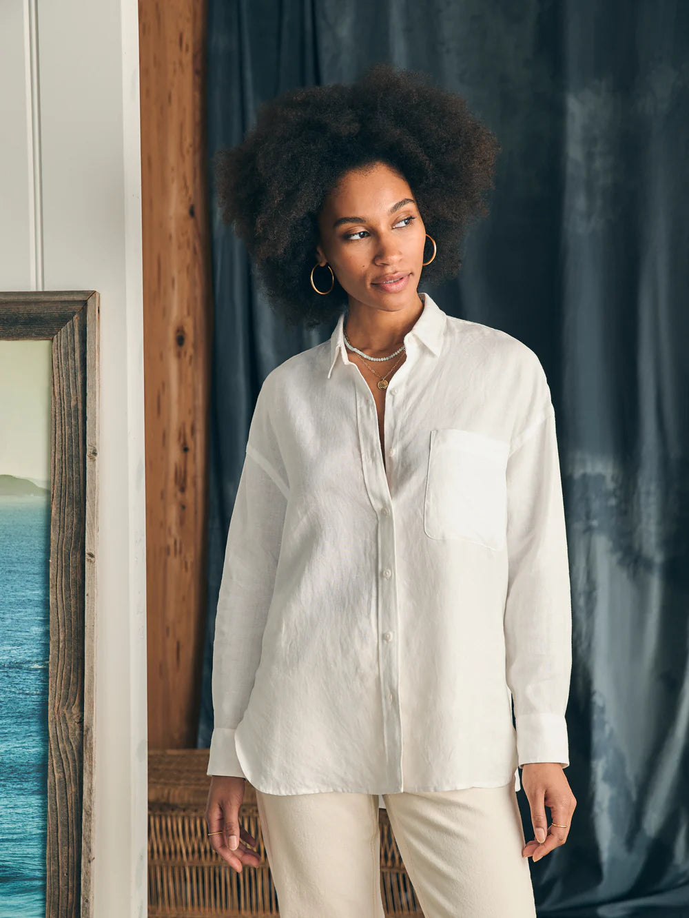 The Laguna Linen Relaxed Shirt is the ultimate summer essential. Made from premium linen, it naturally cools and is incredibly soft thanks to its lightweight and washed fabric. With a loose, relaxed cut, it offers versatile styling options, allowing you to tie it in a knot or wear it open with a tank for a carefree summer look. For a less relaxed fit, we recommend sizing down.