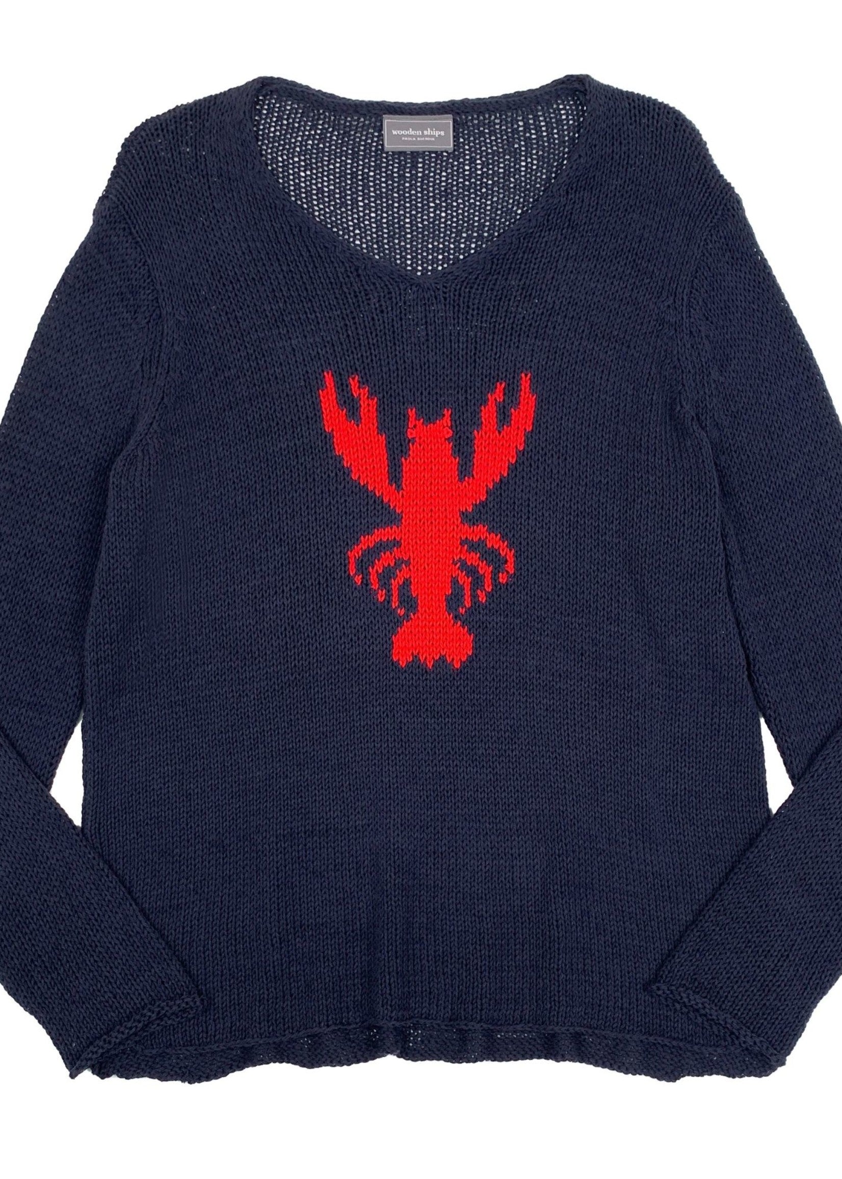 Knit using our soft, lightweight and airy cotton blend yarn, this top will keep you comfortable all season long. A lobster icon is knit directly in to the center front.