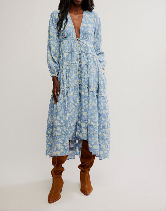 The Pappiet Midi / BlueBell Combo boasts a billowy fit and empire waistline for a comfortable and flattering look. With its cinch detail at the bust and vintage-inspired floral print, this dress exudes effortless style. Other features include front button-up closures, optional hook-and-eye closure, tiered seaming, and cinched balloon sleeves. Elevate your wardrobe with this stunning combo.