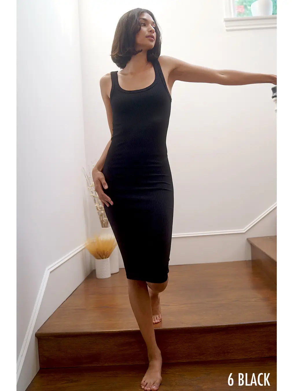 This Ribbed Midi Tank Dress is a perfect combination of style and comfort. Crafted from a ribbed knit fabric, this dress features a round neckline, sleeveless construction and a bodycon silhouette. With a midi length that falls to the mid-calf, this dress is sure to be a timeless wardrobe staple.