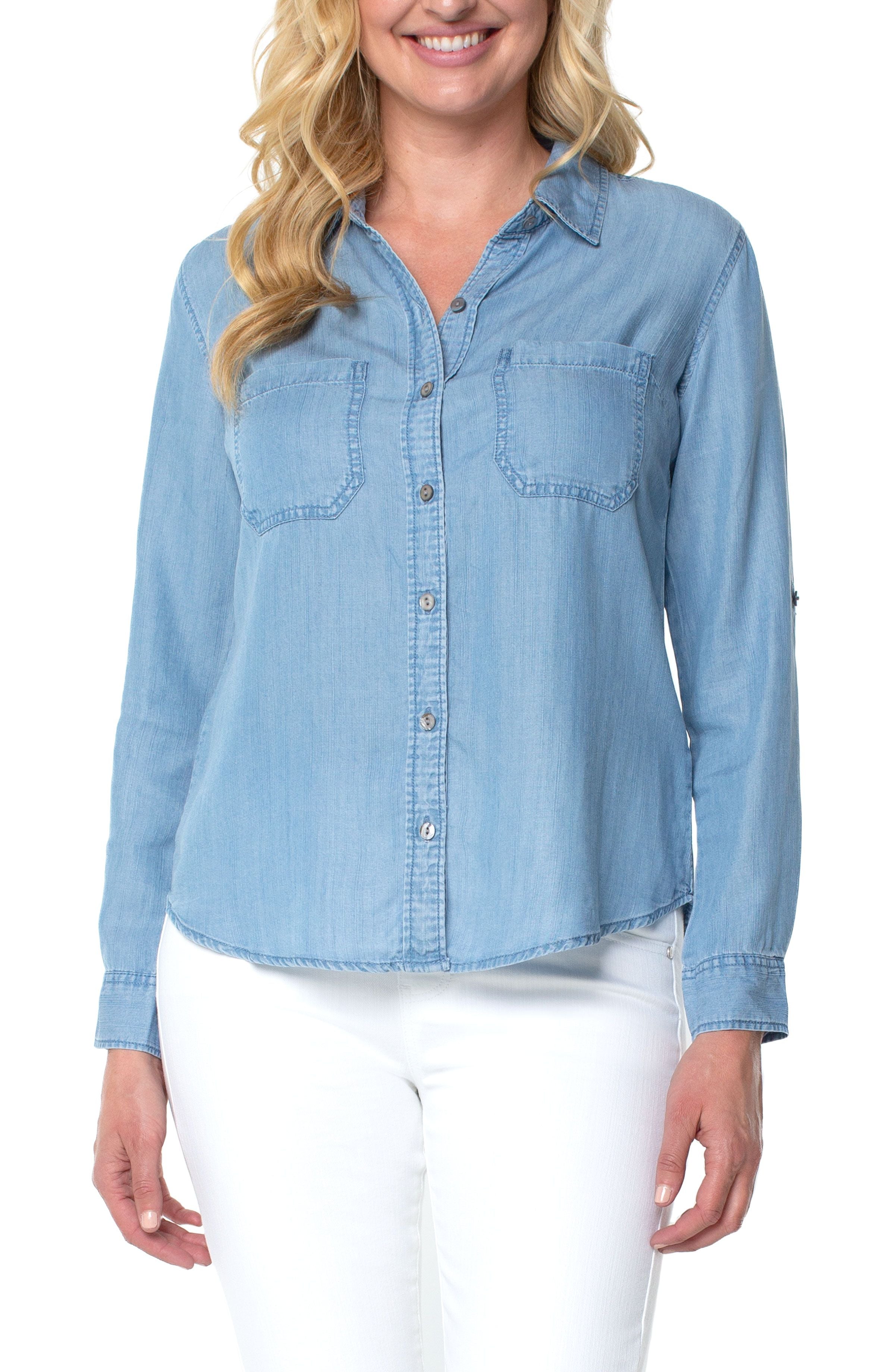 Get ready for coastal style with our Rolled Sleeve Button Down. This light weight chambray shirt features a button down long sleeve design, perfect for any sunny day. Add to your wardrobe and elevate your look effortlessly.