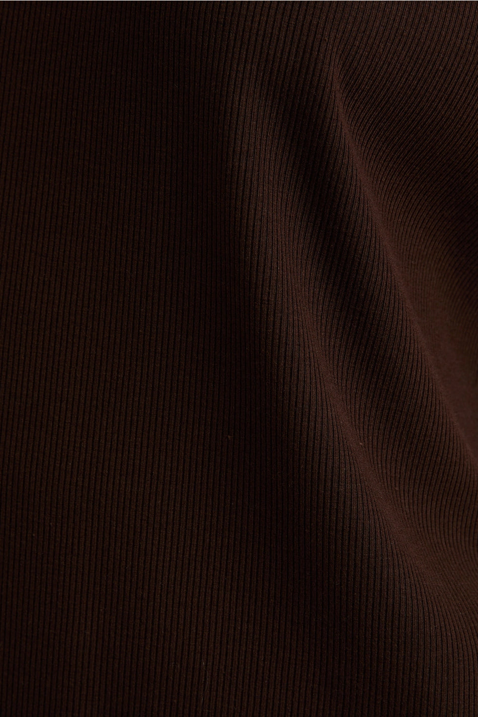 This Round Neck Short Sleeve Shoulder Button Detail Top is a timeless staple for any wardrobe. The rich dark brown color adds a touch of sophistication while the button detail on the sleeve shoulder adds a subtle yet stylish touch. Made from high-quality materials, this top is both comfortable and durable. Elevate your everyday look with this must-have piece.