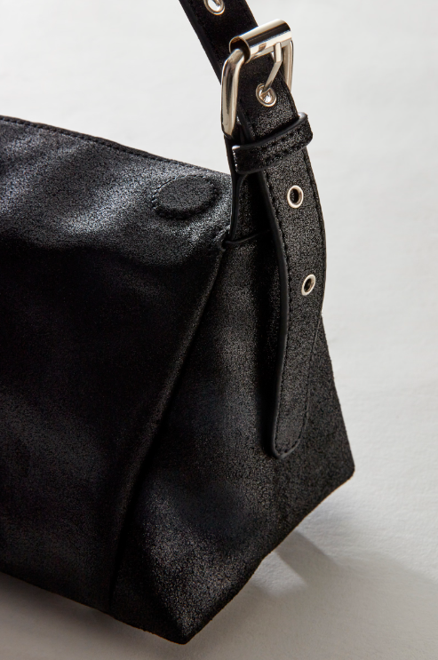 Introducing the stylish and functional Sabi Shoulder Bag. Crafted from luxurious leather and designed in a sleek square shape, this bag is both chic and versatile. It features a convenient magnetic button snap closure, adjustable grommet buckle strap, and metal feet for added durability. Perfect for any on-the-go fashionista.