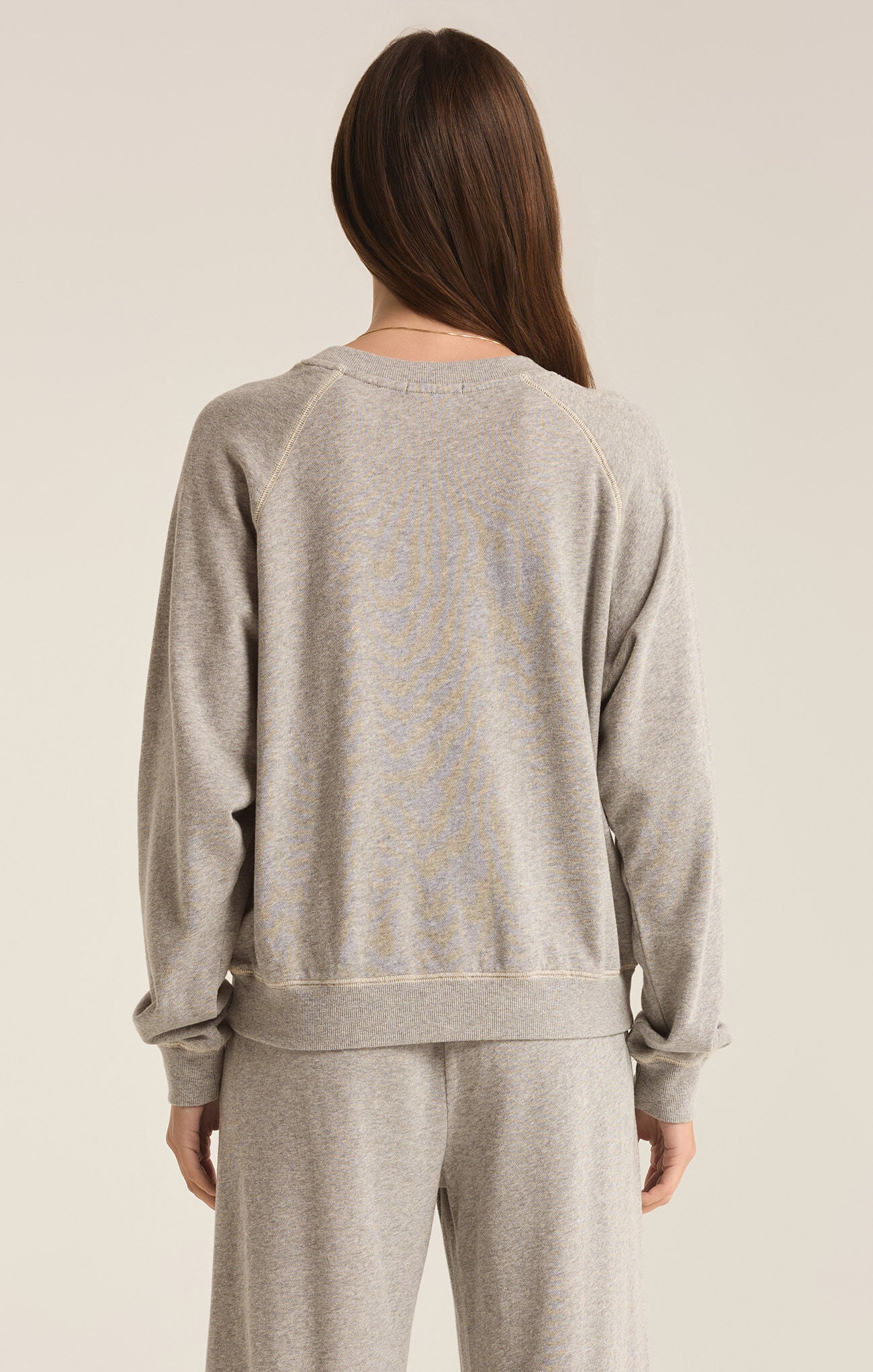 Introducing the Saldana French Terry Top. This top features a comfortable crew neckline and stylish raglan sleeves in a reverse fabric. The ribbed detailing adds a touch of texture and the relaxed fit allows for easy movement. Made with 100% Cotton French Terry, available in Heather Grey and Oatmeal Heather. Length from shoulder measures 22 1/2". Upgrade your wardrobe with this versatile and cozy top.