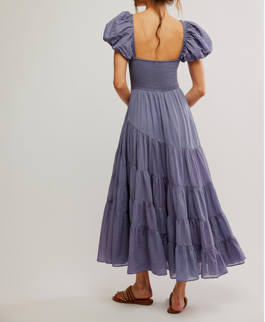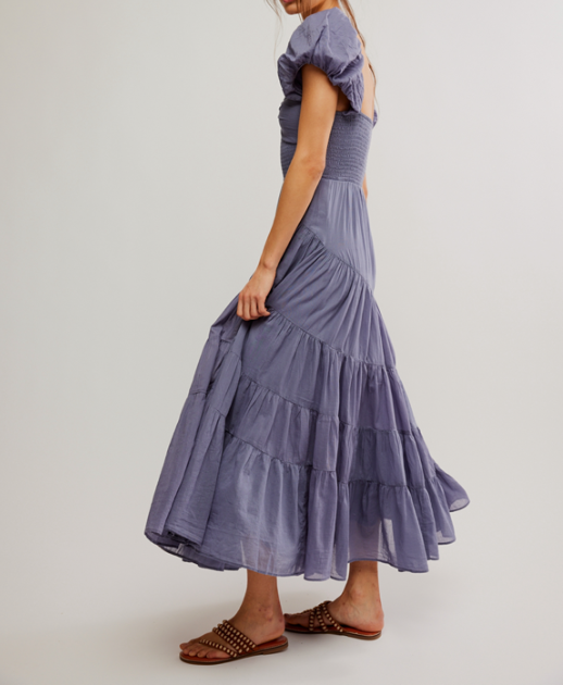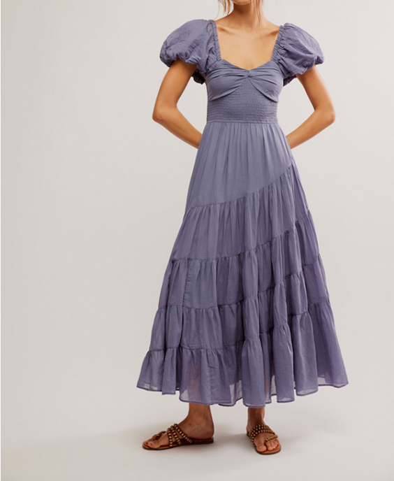 Elevate your summer style with our Short Sleeve Sundrenched Blue Granite dress. The sweetheart neckline and smocking at the center create a feminine silhouette, while the tiered skirt detail adds a touch of playfulness. Puffed sleeves complete the look for a charming and chic outfit.