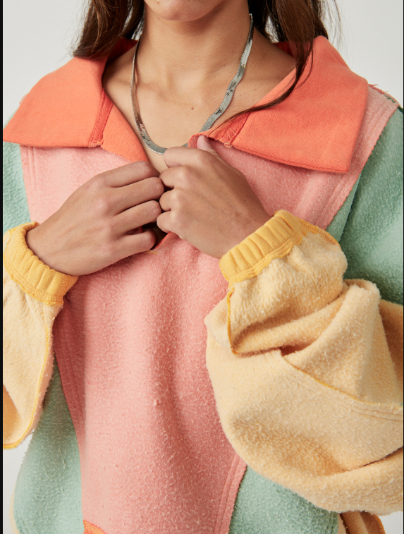 Effortless and essential, it is timeless and colorful piece to always have in your closet. A staple that will never go out of style with the color block patteren thought-out. It has a relaxed, slouchy fit and a n-neckline and raw seaming throughout.