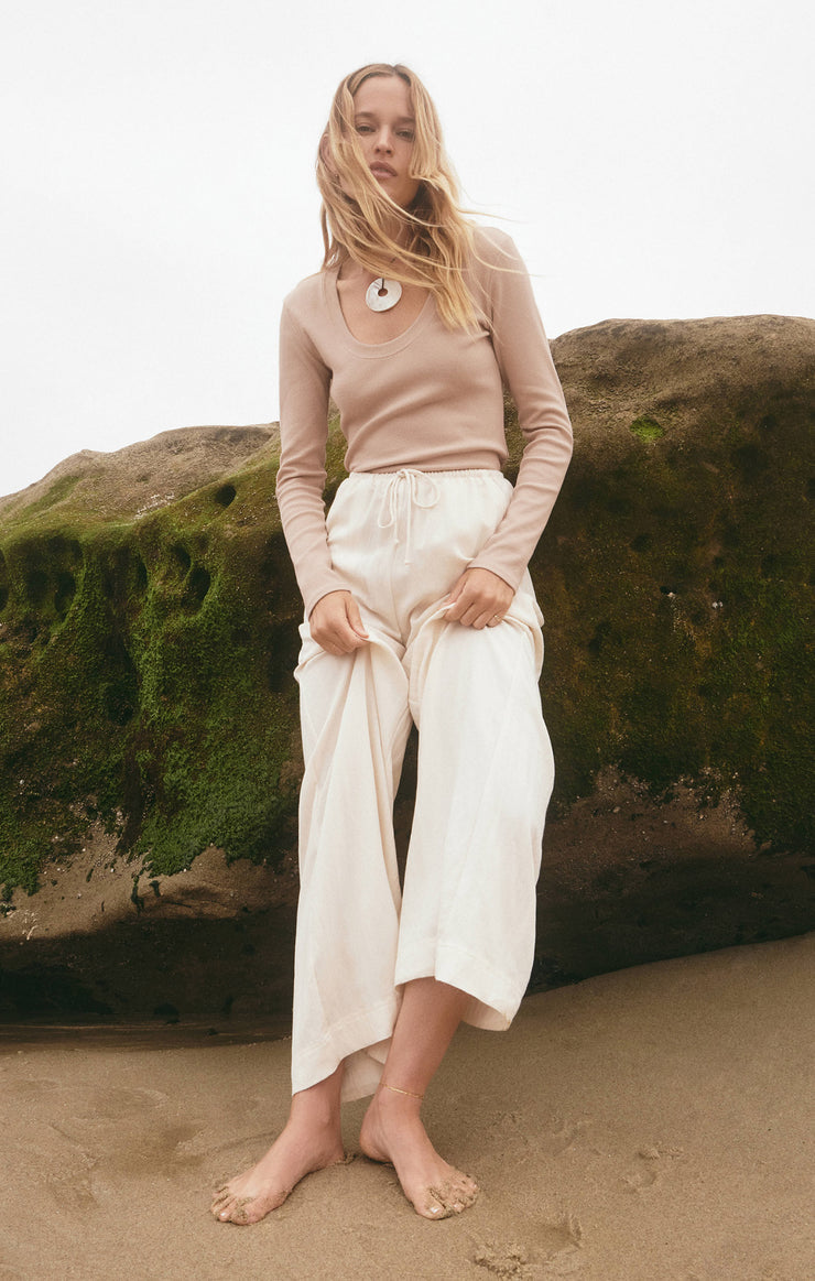 It's all sleek lines and elevated feels with the Sirena Rib Long Sleeve Tee, which comes in our Premium Feather Rib fabric. This perfect layering piece will have you ready for anything, tucked or untucked.