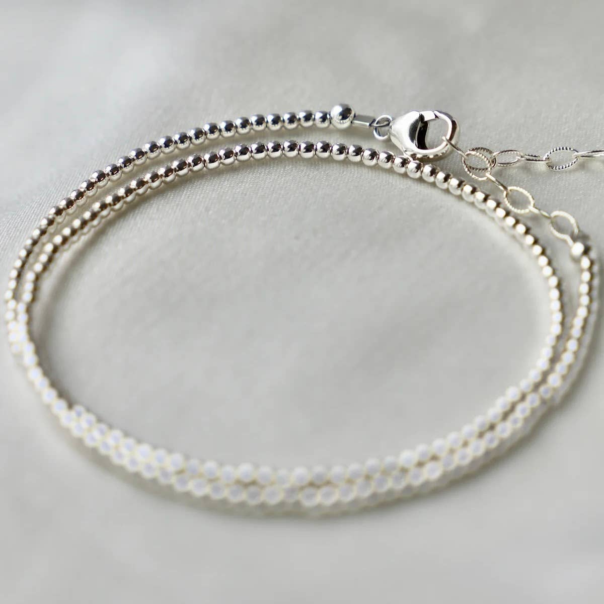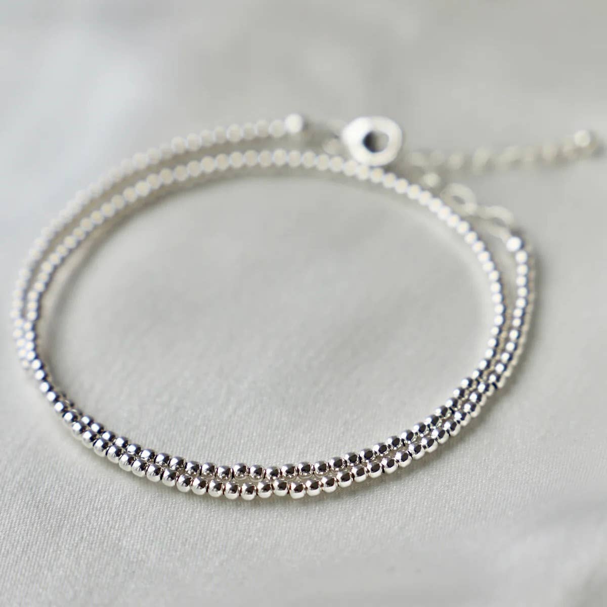 Our double wrap bracelet is one of our number one best selling bracelets. The petite double wrap beaded bracelet features a sterling silver 2mm bead that can be worn as a bracelet or a single layer choker necklace.