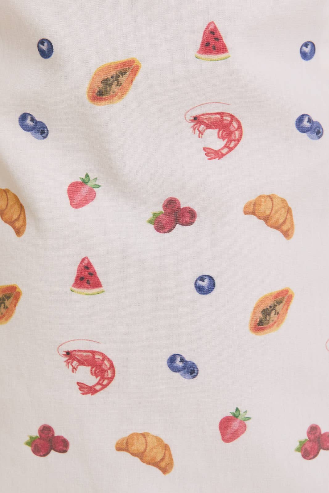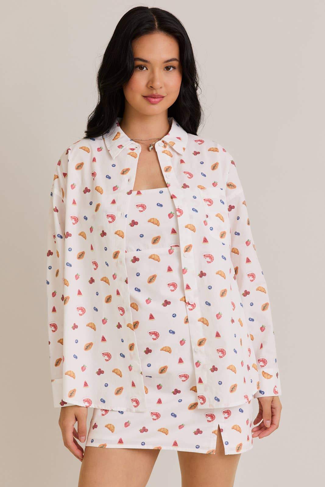 Stay on-trend with our Strapless Smocked Back Graphic Mini Dress. This dress, part of a matching set, features a fun food mix graphic and a flattering smocked back. Designed to hug your curves, this dress will make you stand out at any event. Model is wearing a size small.