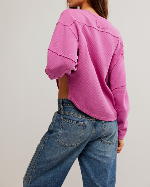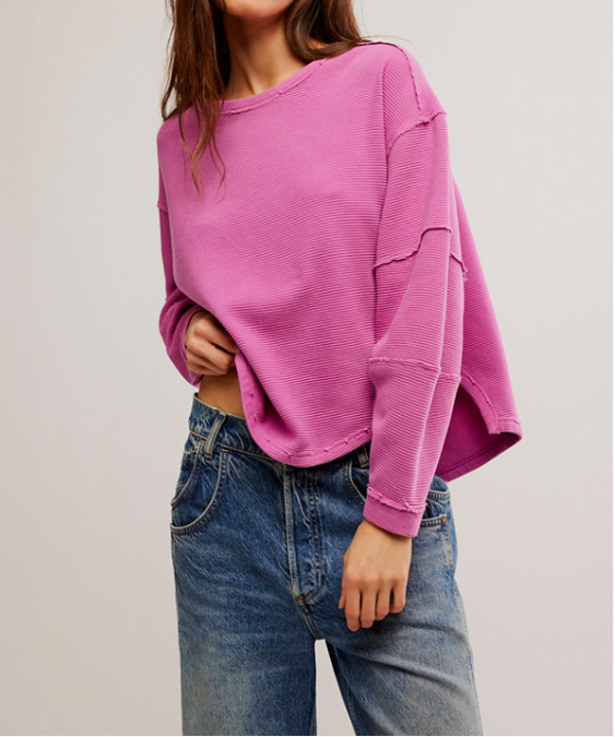 Soft, ribbed knit. Slight scoop neckline. Dropped dolman sleeves with cuffed hems. Raw trim throughout. The Total Eclipse Tee Fiji Flower offers a comfortable fit, with a touch of style. Add this versatile piece to your wardrobe for a perfect blend of comfort and fashion.