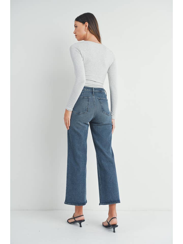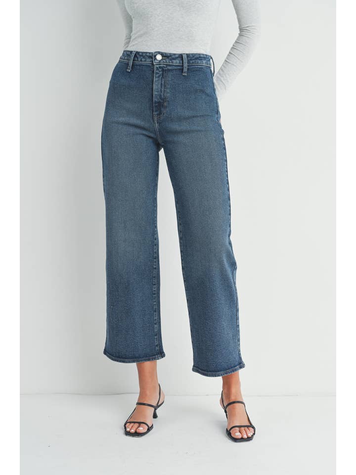 Introducing our Trouser Wide Leg Dark Denim, featuring a high 11'' rise for a flattering fit, a comfortable 28'' inseam, and a stylish 10.5'' opening. Made with a blend of 98% cotton and 2% spandex for a soft and stretchy feel, these trousers are perfect for any occasion. Upgrade your wardrobe today!