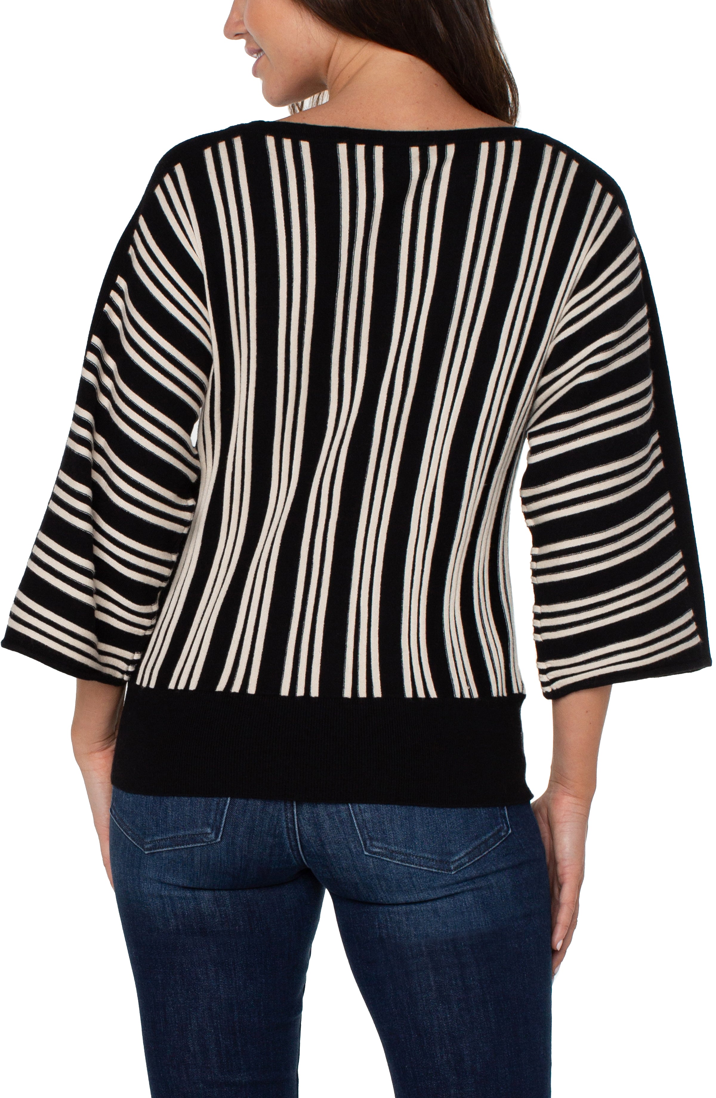 Stay warm in style with this 3/4 length Dolman vertical stripe sweater. The wool blend material provides comfortable and effective insulation, keeping you cozy when temperatures drop. The vertical stripes add a stylish touch, making this the perfect addition to your winter wardrobe.