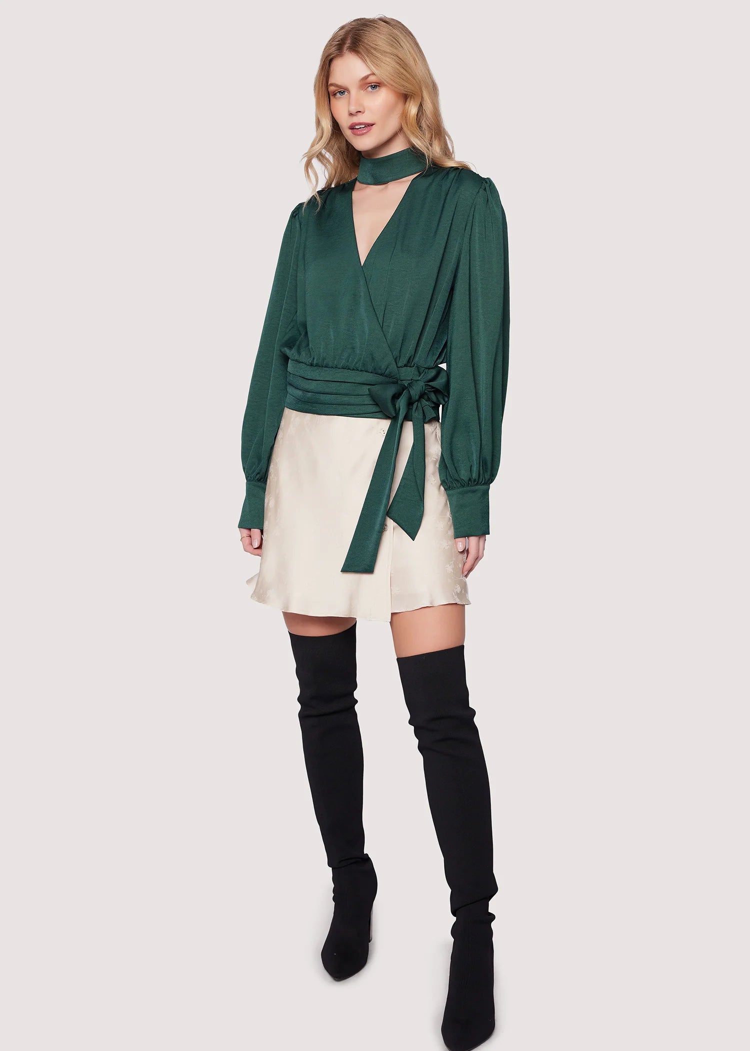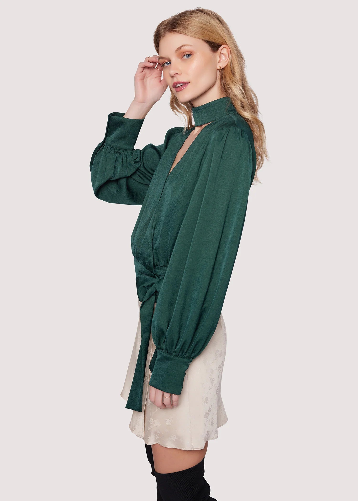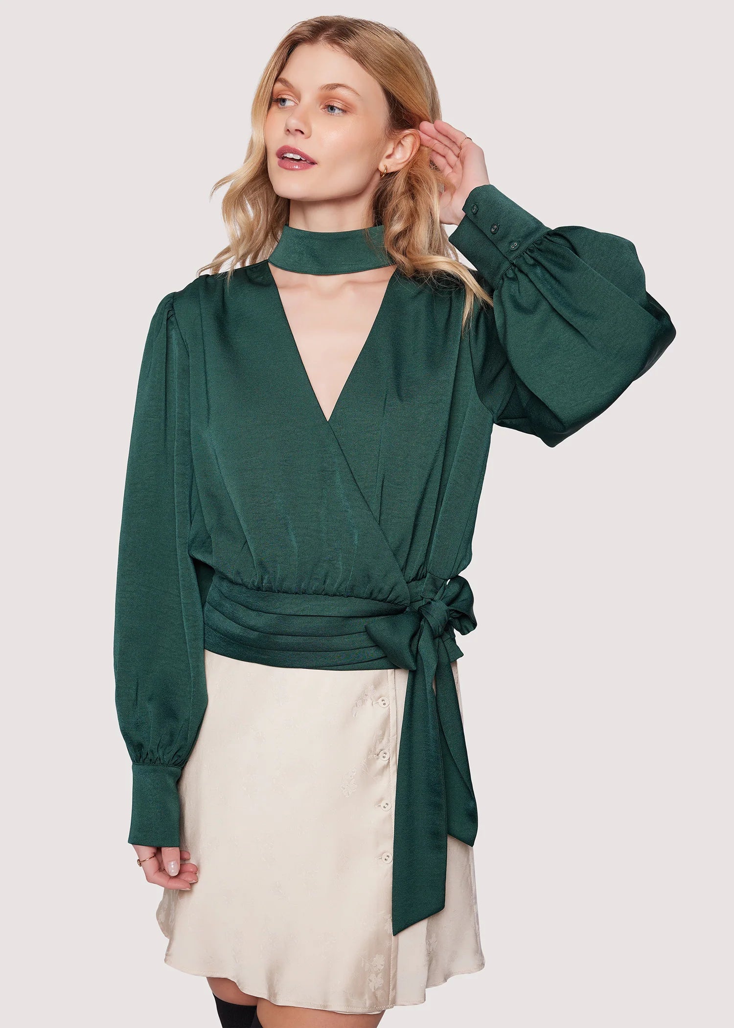 This Calla Green Wrap Top is the perfect piece to add to your autumn wardrobe. Expertly crafted, this chic long-sleeved top is great for effortless styling with its timeless silhouette and modern cut. You're sure to love the versatility and stylish touch it brings.