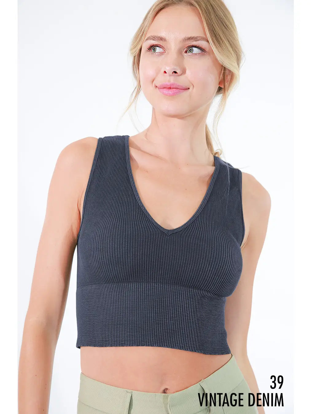 This versatile Plunge V-Neck Crop Top Paloma Grey is a wardrobe must-have. Crafted with thick straps and a ribbed V-neck, it's designed to fit one size and provide ample coverage while concealing your favorite bra.
