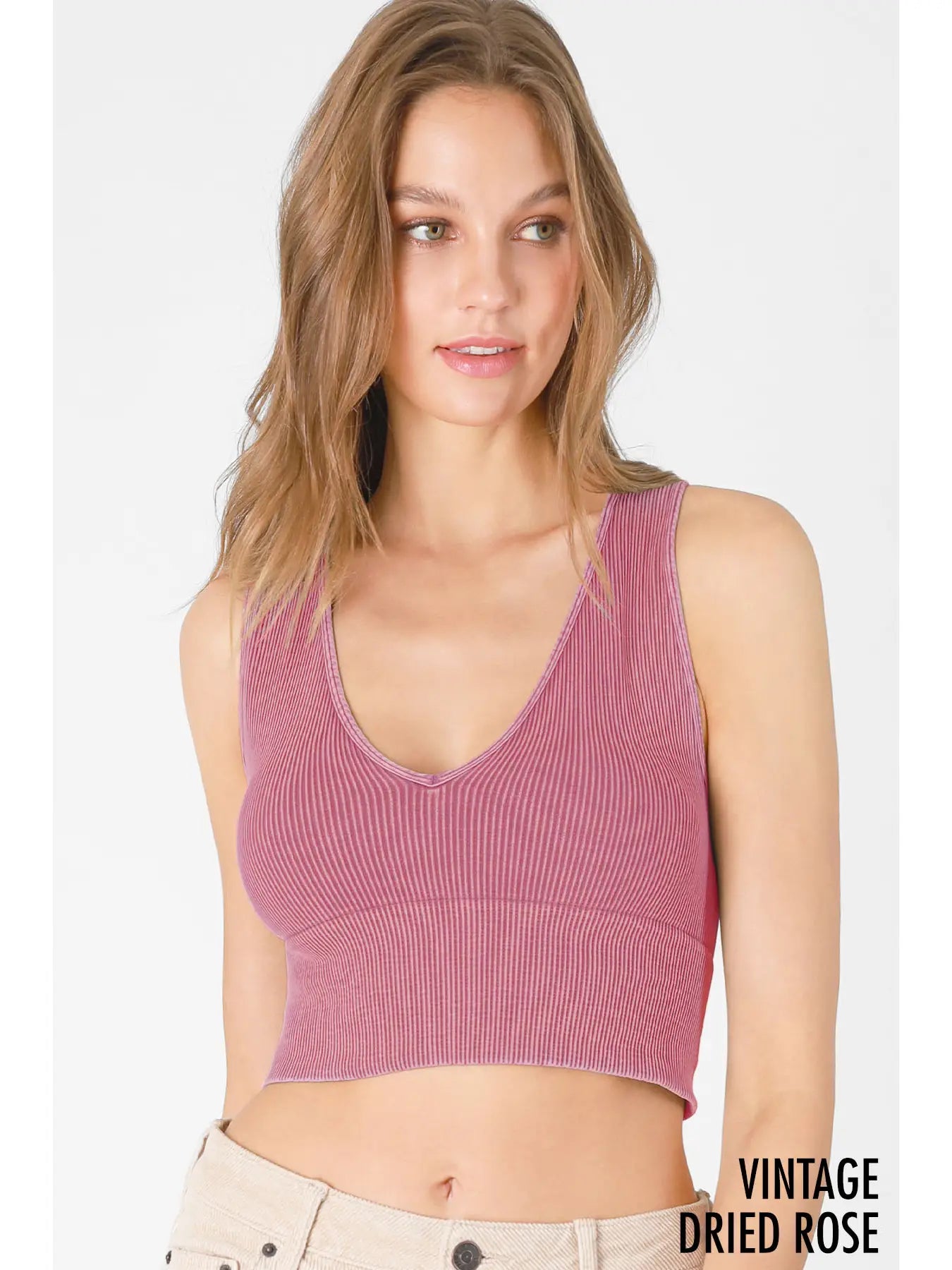 Vintage Plunge V-Neck Crop Top Dried Rose