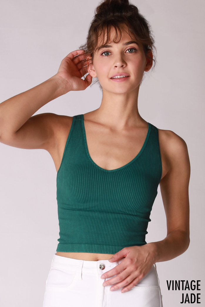 This Vintage V Neck Crop Top is stylish and comfortable. Crafted from a blend of 92% Nylon and 8% Spandex, the ribbed knit top features a luxuriously deep V-neckline and a flattering cropped silhouette. One size fits most, and it is proudly made in the USA. Fits size XS-L.
