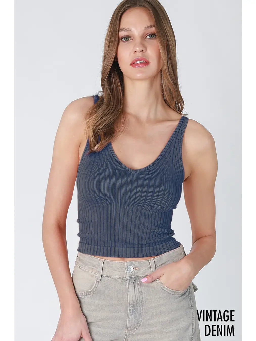 This one-size ribbed tank top from the Vintage collection is the perfect addition to your wardrobe. Crafted with a seamless design and a v-neckline, it is made from a premium blend of 92% nylon and 8% spandex and proudly made in the USA. The unique color makes it stand out from the crowd.