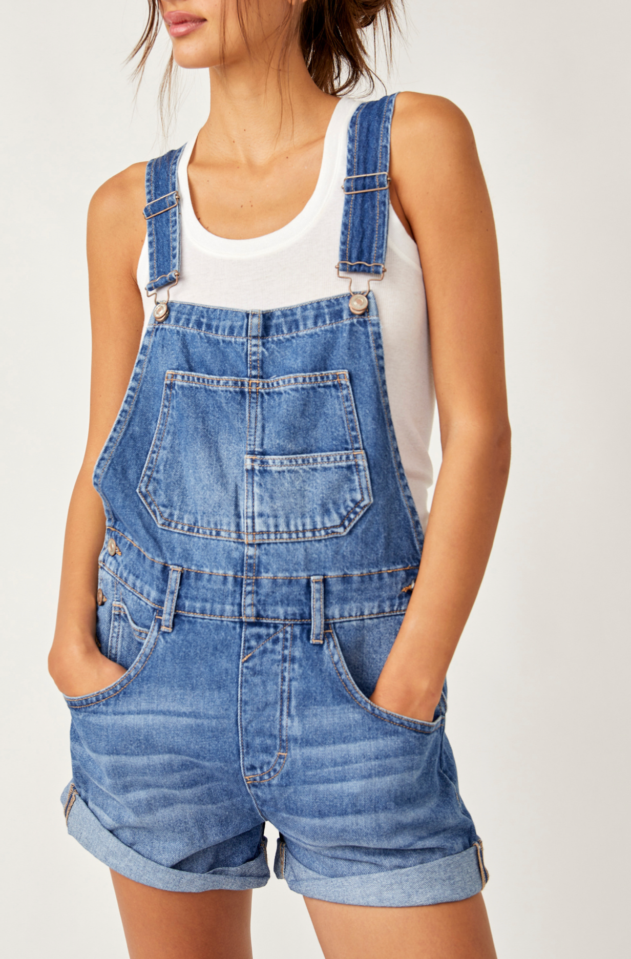 Introducing the Ziggy Shortall Mantra by Free People. These 100% cotton overalls come in a stylish medium blue and are a top seller. Made for maximum comfort and durability, get them before they're gone!